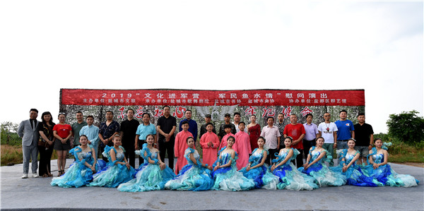 为庆祝“八一”建军节,市文联组织下属文艺家协会和文艺志愿者赴部分驻盐部队开展“文艺进军营 礼赞献军人”系列活动,先后到空军94565部队、武警盐城市支队、在盐驻训73106部队等单位进行慰问。在空军94565部队,书法家为官兵书写书法作品。在武警盐城市支队举办了迎八一“双千工程”进军营慰问活动,书画家创作了社会主义核心价值观等作品赠送给官兵;还举办了庆八一摄影作品展,向子弟兵展示盐城湿地、高架高铁建设等作品,受到政委徐恒俊、参谋长汪平安等干部战士的好评。在73106部队驻训基地,举办了2019“文化进军营 军民鱼水情”慰问活动,文艺工作者、志愿者书写书画作品、摄影、文艺演出,旅长单春锦、政委傅泽云和2000多官兵参加活动。他们顶着酷暑,冒着大雨,观看了群口相声、戏曲联唱、独唱等12个节目。合唱气势恢宏,相声生动恢谐,颂扬了当代军人忠诚奉献精神,洋溢着军民“同呼吸、共命运、心连心”情谊,大家同叙鱼水情,共筑强军梦,为全市双拥创建工作奉献盐城文艺人的一份情和热。