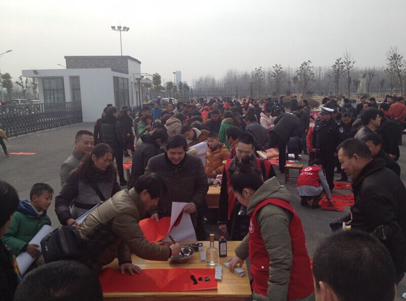 在当天的活动中,书法名家送对联现场人潮涌动,来自市书法家协会的郭列平、曹万峰等6名书法名家,带着红纸、墨汁,现场为群众免费书写春联,送上新春的祝福。“马年已绘丰收景,羊岁继吟致富诗”,来自小尖镇中社村4组的蔡如来,小心翼翼地拿着墨汁未干的春联,特别高兴,“书法家现场书写,寄托的是自己对新年的希望,这可比买回家的春联添了更多年味。”