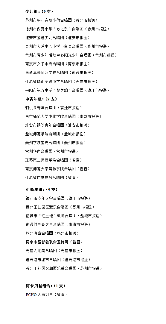 近日,江苏省音协公布了第二届“江苏紫金合唱节”合唱比赛决赛日程安排及入围团队名单,我市报送的盐城师范学院合唱团及盐城市“红土地”合唱团入围决赛。