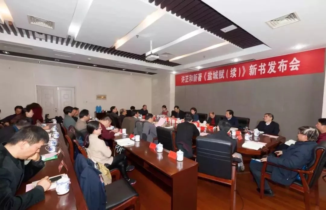 发布会由盐城市文联副主席、市作协副主席陆应铸主持。易楠、浦启夫等为大家带来了许正和三篇代表性作品《盐城赋》《大纵湖赋》《串场河赋》片断配乐朗诵。市文联副主席、市作协主席张曙光,市文广新局副局长王胜利,市政协副秘书长洪承志,市政协学习文史委主任、市诗词协会主席徐于斌分别发表讲话,并为许正和新著《盐城赋(续)》揭彩。市作协名誉主席、国家一级作家张晓惠,市图书馆馆长戈建虎,市方志办处长于海根等与会嘉宾踊跃发言,对该书的出版表示祝贺。盐都区政府原副区长武进甲先生向许正和赠诗、书法并诵读。最后,许正和向市档案馆、市方志馆(筹)、市图书馆、市博物馆现场赠书。