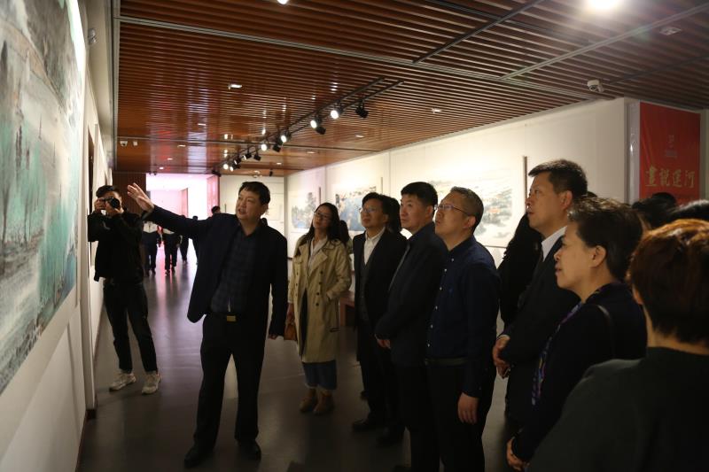“画说运河——江苏美术家采风写生创作作品展”是省委宣传部、省文联精心组织的重大美术创作工程,是继傅抱石率团两万三千里写生后的又一次大型创作活动,是江苏美术界的一件大事。美术家们以高度的政治自觉和文化自信投入到创作中,精心构思,反复研磨,历经两月,完成八尺整张精品力作80余件,先后在南京、扬州、淮安、苏州巡展。此次到县巡展是第一次,共展出40件作品,5月21日结束。