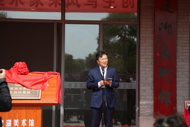 省文联党组成员、副主席、书记处书记刘旭东,省美术家协会副主席陆庆龙、省美协常务副秘书长佘玉奇,市文联党组书记、主席高定,建湖县委常委、宣传部长倪世勇,县人大常委会副主任、县委办主任刘登石,县政府副县长赵宇,县政协副主席、文联主席徐守忠及艺术家、师生代表200余人出席活动并观看展览。活动由赵宇副县长主持,刘登石副主任致辞,陆庆龙副主席讲话,省美协和建湖县文联签订合作协议,省、市、县领导为展览揭幕。