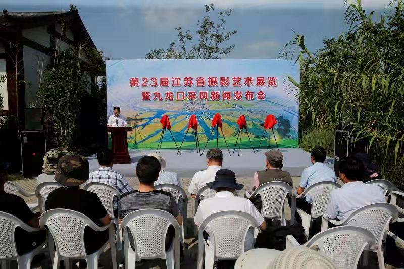 8月16日下午,第23届江苏省摄影艺术展览暨九龙口采风新闻发布会在建湖县九龙口旅游度假区举办,省文联党组成员、副主席、书记处书记徐昕,省摄影家协会名誉主席沈遥、主席许益民、副主席徐澍、王京、肖勇、屠国啸、汤天明、徐健,盐城市文联党组书记、主席高定,建湖县人大副主任、九龙口旅游度假区党工委书记唐坤,建湖县政协副主席、县文联主席徐守忠及省、市、县摄影名家、爱好者,新闻媒体记者近百人出席。