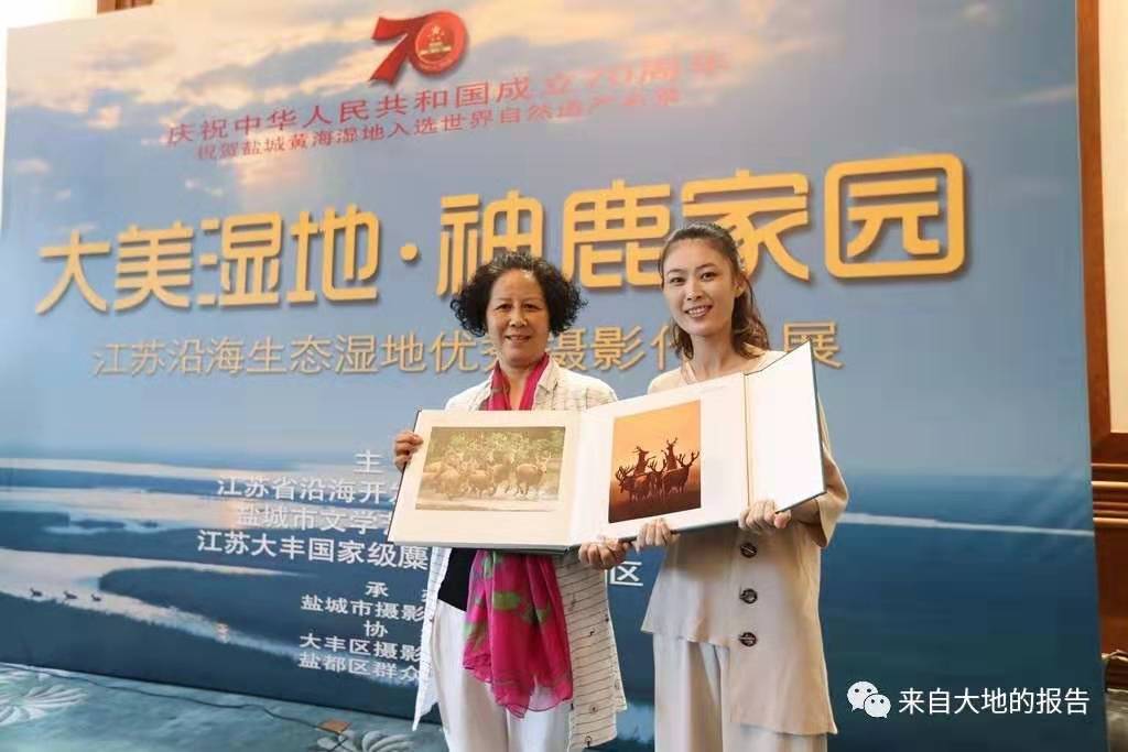 为庆贺黄海湿地入选世界自然遗产名录,庆祝祖国70华诞,9月12日上午,“大美湿地•神鹿家园”江苏沿海生态湿地优秀摄影作品展在盐都区群艺馆开幕。市政协副主席姜友新,江苏省沿海开发集团党委委员、组织部部长马晓鸣,市文联党组书记、主席高定,江苏大丰国 家 级 麋鹿自然保护区副主任沈华,市、县(市、区)摄协会员代表、爱好者及各界人士等近200人参加活动。英国皇 家摄影学会、韩国蔚山广域摄影协会等发来贺电、贺函。