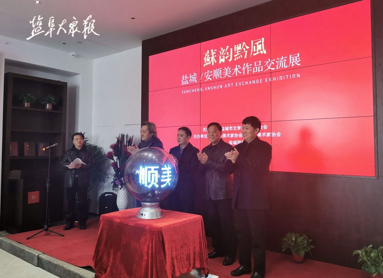 市美术家协会主席李晓东主持仪式,贵州省美术家协会主席团成员、安顺市美术家协会主席吴传双,市总商会(市工商业联合会)副会长、市文化产业商会会长沈凯斌出席开幕式,安顺市参展画家代表和盐城市美协主席团、理事会成员以及参展画家共同见证了展览启动仪式。