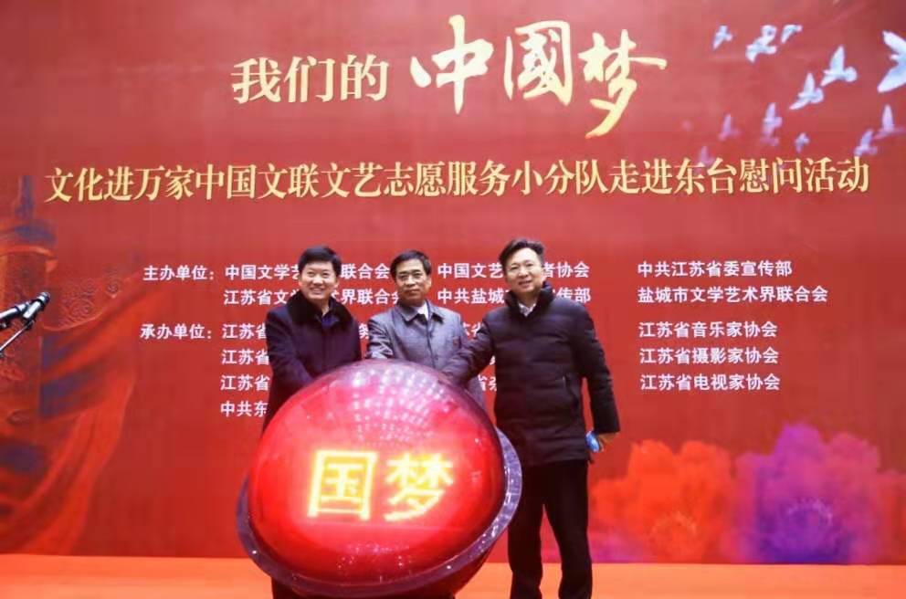 1月6日,2020“我们的中国梦”——文化进万家中国文联文艺志愿服务队走进东台活动成功举办,中国人民革命军事博物馆艺术委员会副主任、中国文艺志愿者协会副主席、中国书法家协会理事、隶书委员会副主任张继,江苏省文联党组成员、副主席、书记处书记刘旭东,盐城市文联党组书记、主席高定,副调研员唐小荣,东台市委常委、宣传部长周爱东和东台各镇(区)宣传委员、文化站长及相关部门负责人、群众代表出席活动。
