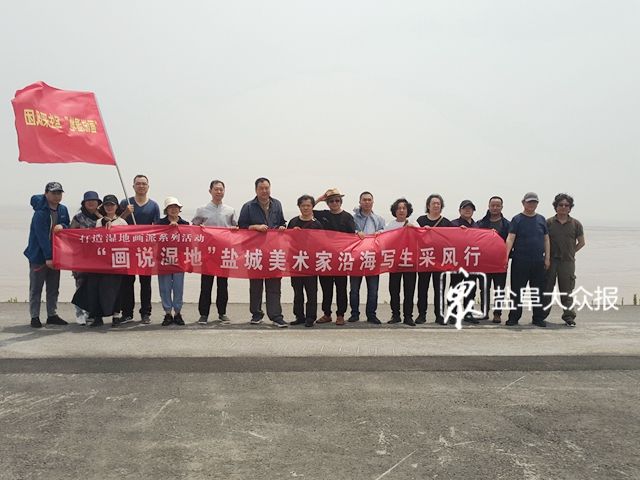 下了车,画家们有的挎着照相机,有的夹着写生本,迫不及待走向观海听潮区。一望无际的潮水,掠过天空的飞鸟,海涂小取的渔民……黄海湿地,带给画家们视觉的震撼和审美的愉悦。