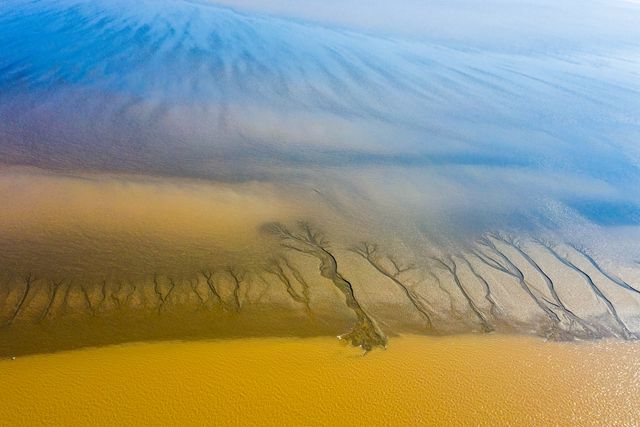 本次孙华金获奖的摄影作品《世界遗产 湿地“森林”》拍摄于世界自然遗产地东台条子泥湿地。在海水退潮后他通过无人机从空中俯看,发现了这片由于海水对湿地泥沙冲刷形成的形状各异的沟壑,恰如一棵棵生长在滩涂上的大树,蔚为壮观,让人叹为观止。(图片均由孙华金摄)