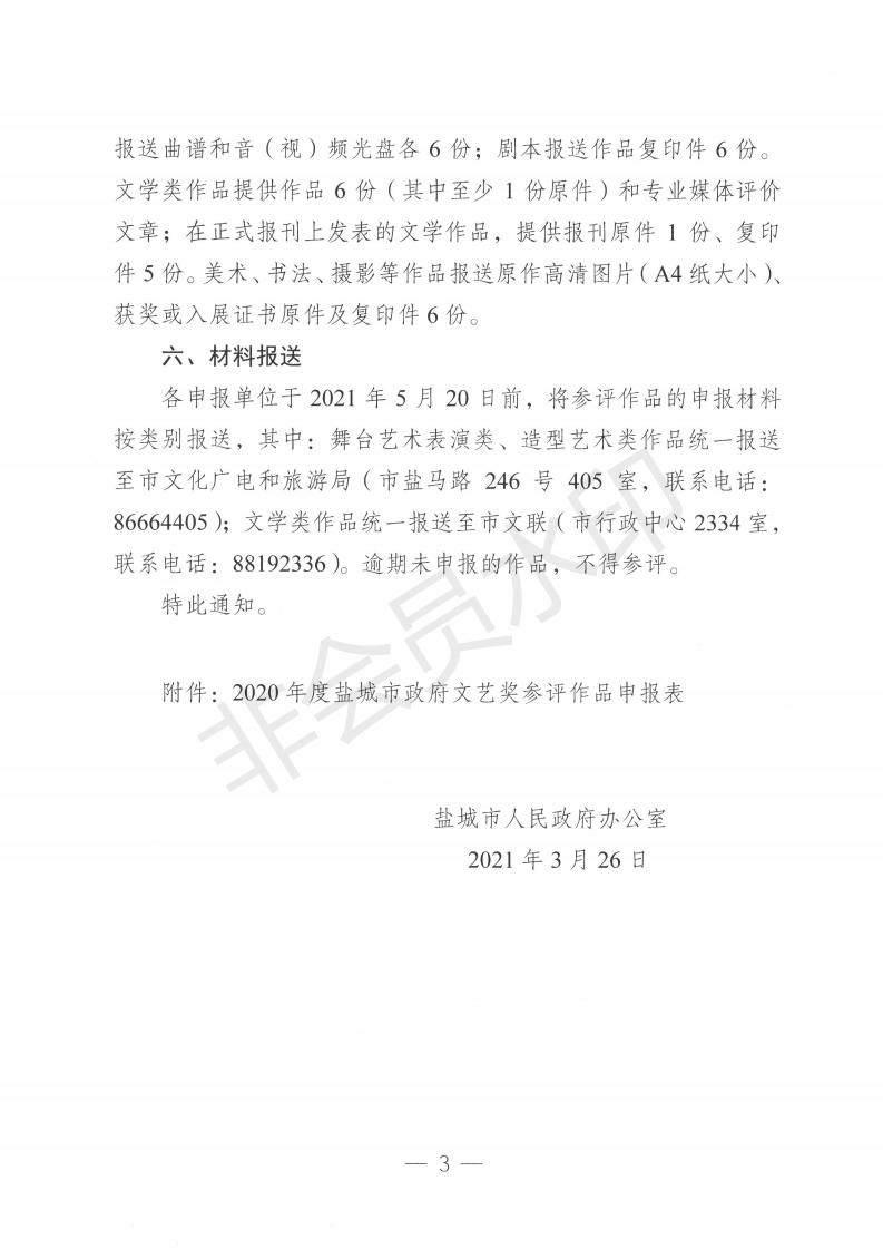 盐城市人民政府办公室关于开展2020年度盐城市政府文艺奖申报评选工作的通知