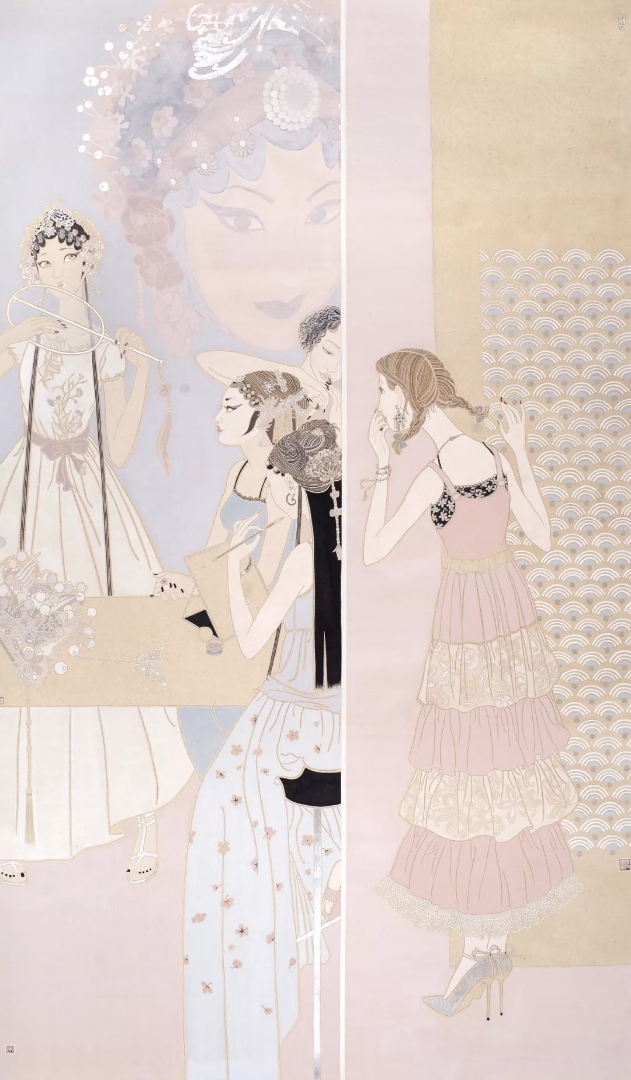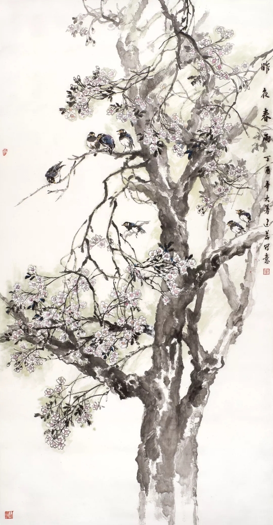 严项洋 中国画 《最美夕阳红》 190x190cm
