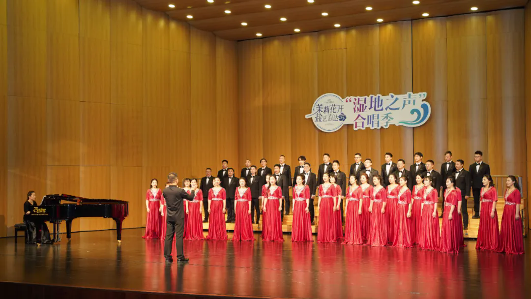 江苏省第七届紫金合唱季盐城分会场暨盐城市第二届“湿地之声”合唱季活动在此举行。来自盐城各地的十二支优秀合唱队伍齐聚一堂,用歌声唱响时代主旋律,传递爱党、爱国、爱社会主义的深厚情感。