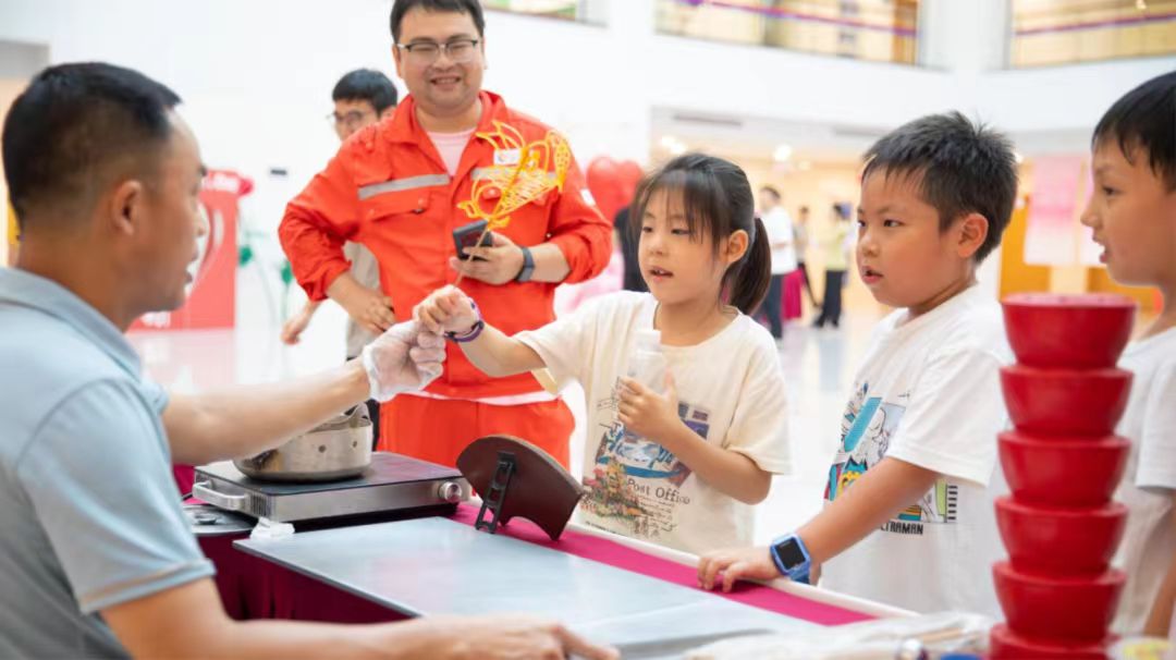 一城记忆,非遗直达。乞巧雅集活动现场,氛围热烈而温馨。非遗手作区,手工匠人以勺为笔、以糖为墨,手腕轻抖间,栩栩如生的鹊桥与“绿能港”的意象顷刻凝结于板,引来阵阵赞叹。巧果茶歇铺香气四溢,大家品点心、谈感受,脸上洋溢着幸福的笑容。诗词飞花令擂台前,一位位“诗词达人”才思泉涌,根据七夕主题吟咏名句、妙语连珠。“以书‘益’花”和“开放麦克风”区域也排起长队,将用旧书换来的鲜花赠予所爱之人,温情在交换与表达间静静流淌。随处可见群众在打卡点合影,用镜头定格这个夜晚最美好的瞬间。