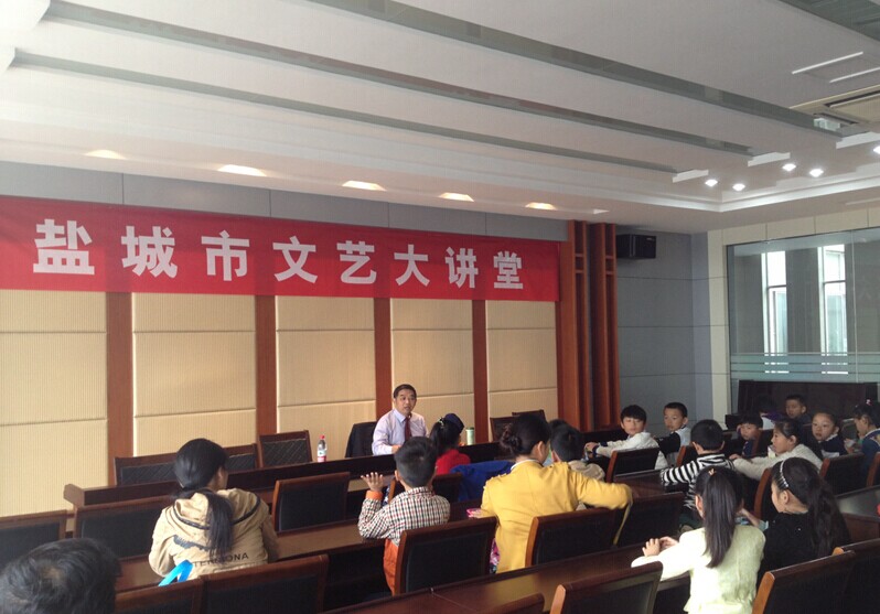 盐城文艺大讲堂活动第三场于10月19日上午在市文化馆举行,中国曲艺家协会会员、中国快板艺术委员会委员、盐城市曲艺家协会副主席王红专老师讲解《快板的创作和表演》,爱好快板艺术的小学生和市民朋友共40多人聆听了讲座。