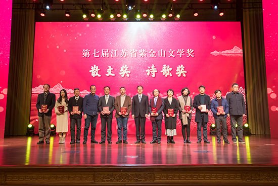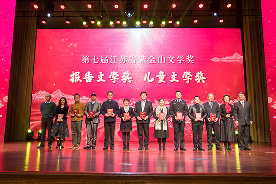 29日晚, 第七届江苏省紫金山文学奖颁奖典礼在江苏大剧院隆重举行。我市作家杨铁平《世界的光》、陈义海《从老欧洲到新英格兰》、曹文芳《牧鹤女孩》分别喜摘长篇小说奖、散文奖和儿童文学奖。