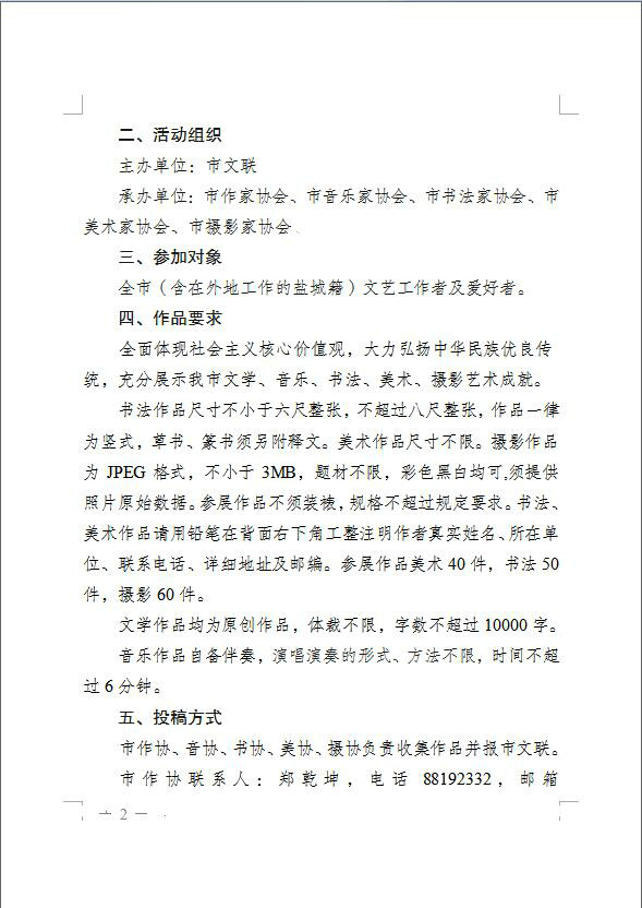 关于举办“壮美70年 辉煌新盐城” 文艺作品征集和展览展演活动的通知